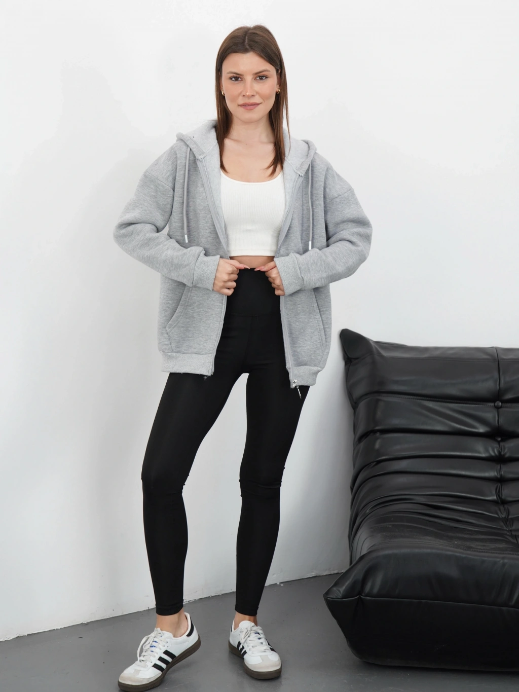 3 iplik şardonlu fermuarlı kapşonlu hırka gri, günlük şıklık ve rahatlık arayan kadınların favorisi olmaya aday bir parçadır.