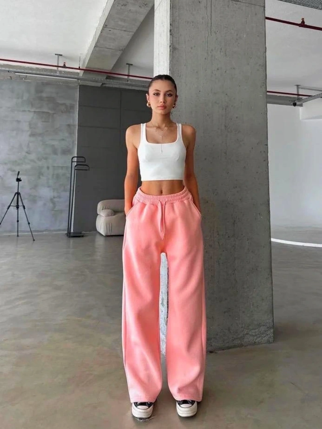 3 iplik şardonlu Lastik paça eşofman pembe p510439