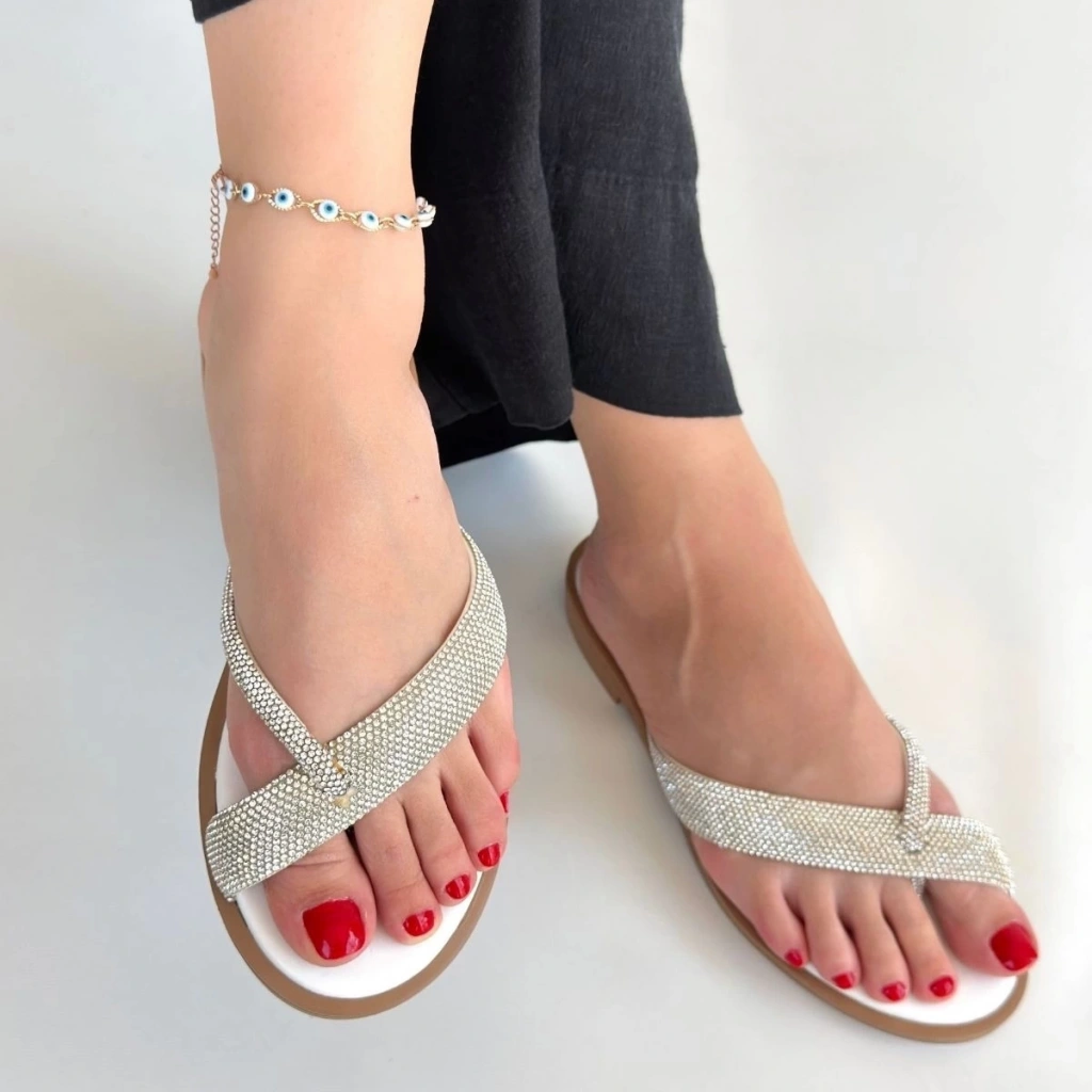 • Eday Gümüş Boncuk İşlemeli Terlik