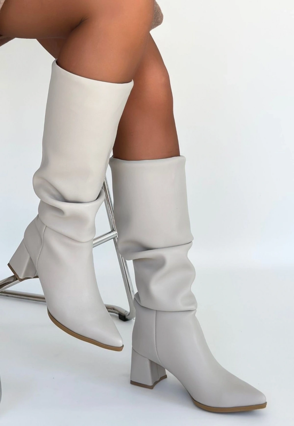 Pitay Bej Cilt Topuklu Çizme