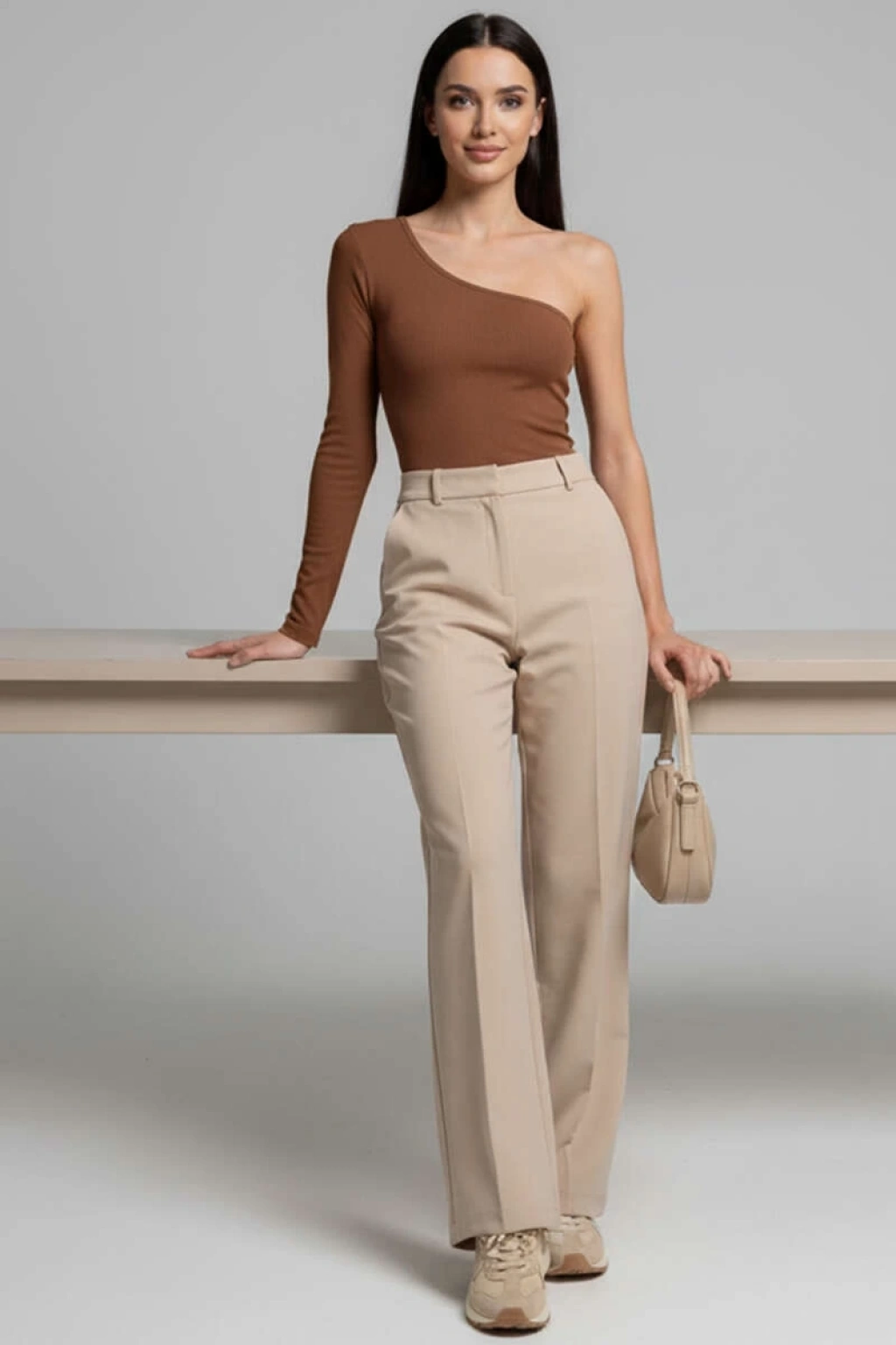 Tek Omuzlu Basic Bluz kahve T4275