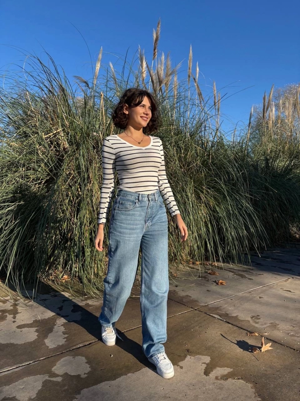 Şıklığı ve rahatlığı bir arada sunan beyaz V yaka çizgili bluz A3699, gardırobunuzun vazgeçilmezi olmaya aday!