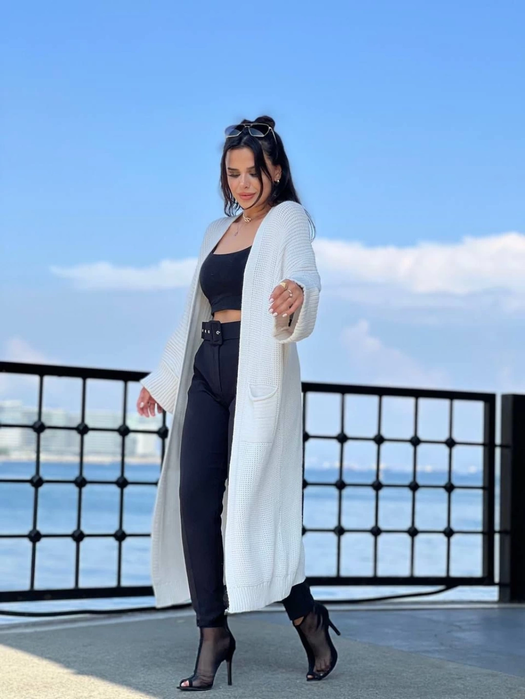 Beyaz rengi ile her kombinle uyum sağlayan bu hırkayı ofis, günlük hayat ya da özel günlerde rahatlıkla tercih edebilirsiniz.