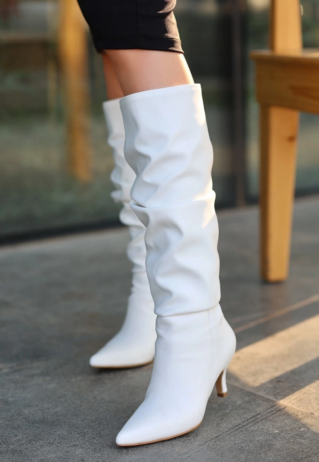 Detay : Topuklu Diz Altı Körüklü Çizme